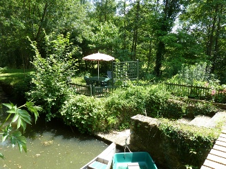 Across the bridge and onto the island and your second patio with bbq and sun loungers. Steps lead down to the boats