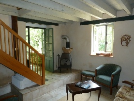 Downstairs from the kitchen is the sitting room which stays cool in the hot summer days. A wood burner makes the room cosy out of season. Leading off the sitting room is a small patio - a shady place in the afternoon .